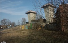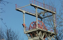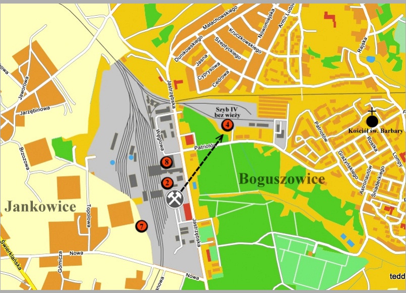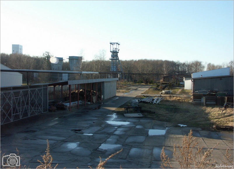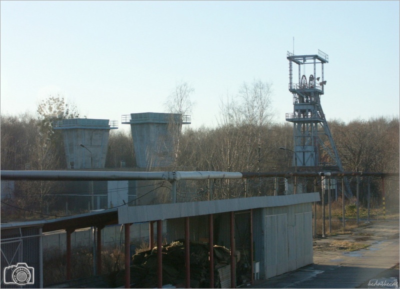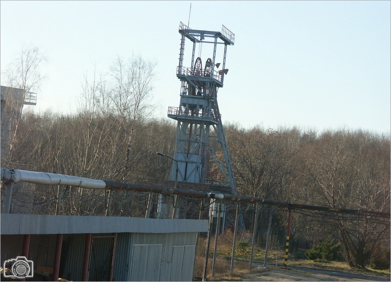 Szyb IV - wentylacyjno (wydechowy) - transportowy, o głębokości 273,5m i średnicy tarczy 5,0 m oddano do użytku w 1952 roku. Służył głównie do opuszczania na dół drzewa. Był oddalony o 500 m na wschód od szybów głównych. Kilka lat temu zdemontowano wieżę szybową (na jej miejscu stoi budynek depresyjny), zmodernizowano stację wentylatorów i dyfuzory. W rejonie szybu IV znajdował się tartak (nadal działa?), obok którego stał wysoki dźwig oraz warsztaty szkoły górniczej. Część zdjęć wykonałem w styczniu 2007 roku, a więc jeszcze przed demontażem wieży szybowej.