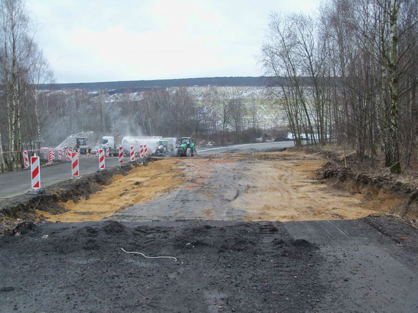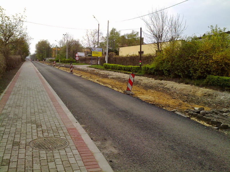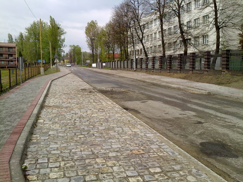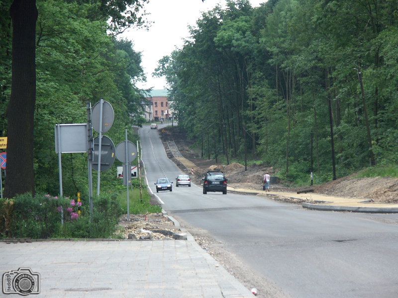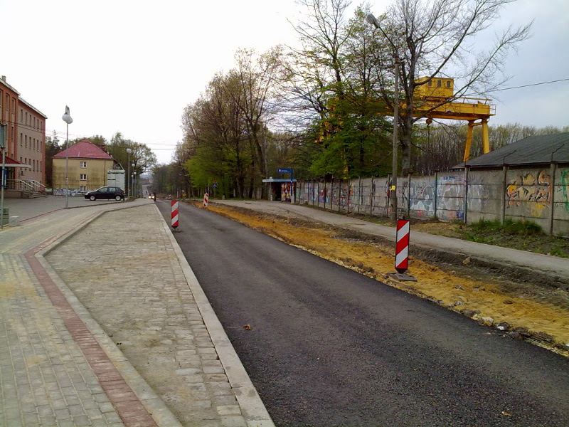 Nie było nas, był las ... Judasz (Judasforst), kiedy to na przełomie wieków XIX i XX odkryto tu pokłady węgla kamiennego. Wraz z budową kopalni postawała droga łącząca docelowo Świerklany Górne, skąd transportowano materiał i urządzenia do budowy naszej gruby, przez Chwałowice do stacji kolejowej w Niedobczycach, obecnie Rybnik - Dworzec Towarowy. Jak wspomina J. Sobik w "Dziejach Świerklan" (maszynopis): Stara droga ze Świerklan do Rybnika prowadziła obecną ul. Plebiscytową przez las i za boiskiem przy kopalni "Jankowice" skręcała w lewo i dalej wiodła przez obecne hałdy kopalni "Jankowice" i "Chwałowice" do Dworca Towarowego w Rybniku." Była to droga kiepsko utwardzona, a w czasie deszczu i roztopów trudna do przebycia, zwłaszcza na odcinku leśnym. Ten leśny odcinek od Świerklan prowadził przez głęboki wąwóz, który zasypano skałą z drążenia szybów. Pisze o tym wspomniany J. Sobik: "W 1913 roku rozpoczęto drążyć Szyby "Blücherschchte" i trzeba było wszelki materiał sprowadzać szosą Rybnik - Świerklany Górne. Najpierw w lesie zrobiono na palach i słupach pomost na tej wysokości, jak obecnie nasyp tej szosy się przedstawia. Następnie położono wąskotorówkę. I w ten sposób sprowadzano od szosy Świerklany Górne wszelki materiał budowlany. Również na tej wąskotorówce wywożono wywrotkami (kolebami) ziemię i kamień z tych drążonych szybów, robiąc nasyp na obecną drogę". Pod koniec lat 30-tych ub. wieku drogę obok kopalni, aż do Boguszowic utwardzono tłuczniem kamiennym. Równocześnie planowanej przebudowie odcinka drogi z kopalni do Świerklan Górnych przeszkodził wpierw brak pieniędzy, a potem wybuch wojny. W latach 1957-59 gmina wykonała gruntowną przebudowę drogi na odcinku od kopalni do Boguszowic, kiedy to nawierzchnię wykonaną z tłucznia kamiennego krakowska firma budowlana wymieniła na kostkę granitową. Pierwszą nawierzchnię asfaltową (ok. 800 m.) na odcinku drogi wzdłuż naszej gruby położono w 1967 roku. W tym samym czasie kopalnia "Jankowice" położyła 1050 m chodnika (źródło: M.Kula "Boguszowice"). Warto wspomnieć, że ulica biegnąca obok naszej kopalni nosiła różne nazwy. Wpierw był to Blicher, jeszcze przed wojną Piłsudskiego, po wojnie Grunwaldzka, a obecnie Jastrzębska. Poniżej zdjęcia z ostatniej przebudowy drogi, począwszy od Boguszowic (ul. Jastrzębska, Błękitna i Przez Zwał) do Chwałowic (Tkoczów), udostępnione mi między innymi przez Noah_pl i Białego Rekina - użytkowników forum skyscrapercity.com. Dzięki!