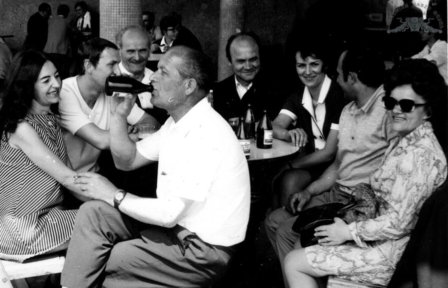 Górne rzędy: Stanisław Gajda, Andrzej Waszecki - przyszły dyrektor, Maksymilian Kula, Piotr Swoboda, Paweł Sodzawiczny, Jan Sitnikow, Andrzej Mańkowski, Tadeusz Pruszkowski, Kazimierz Wala, Józef Piórecki, Marek Jabłoński, Wincenty Mura, Ryszard Paprotny - przyszły dyrektor, Leonard Kowalski. Autorką zdjęcia jest zapewne pani Halina Fojcik, bo brak jej na nim. (fot. ze zbiorów pana R. Paprotnego).